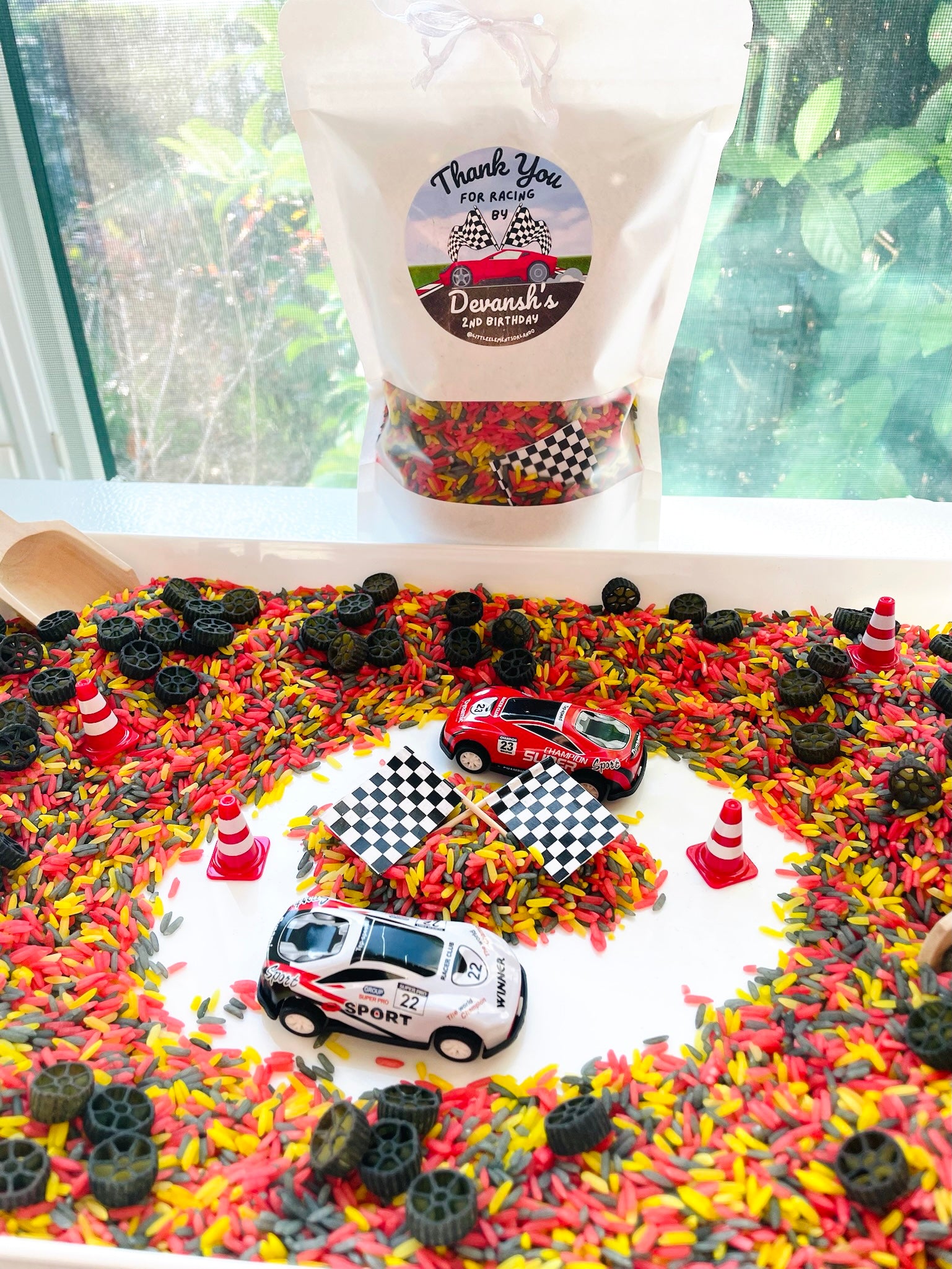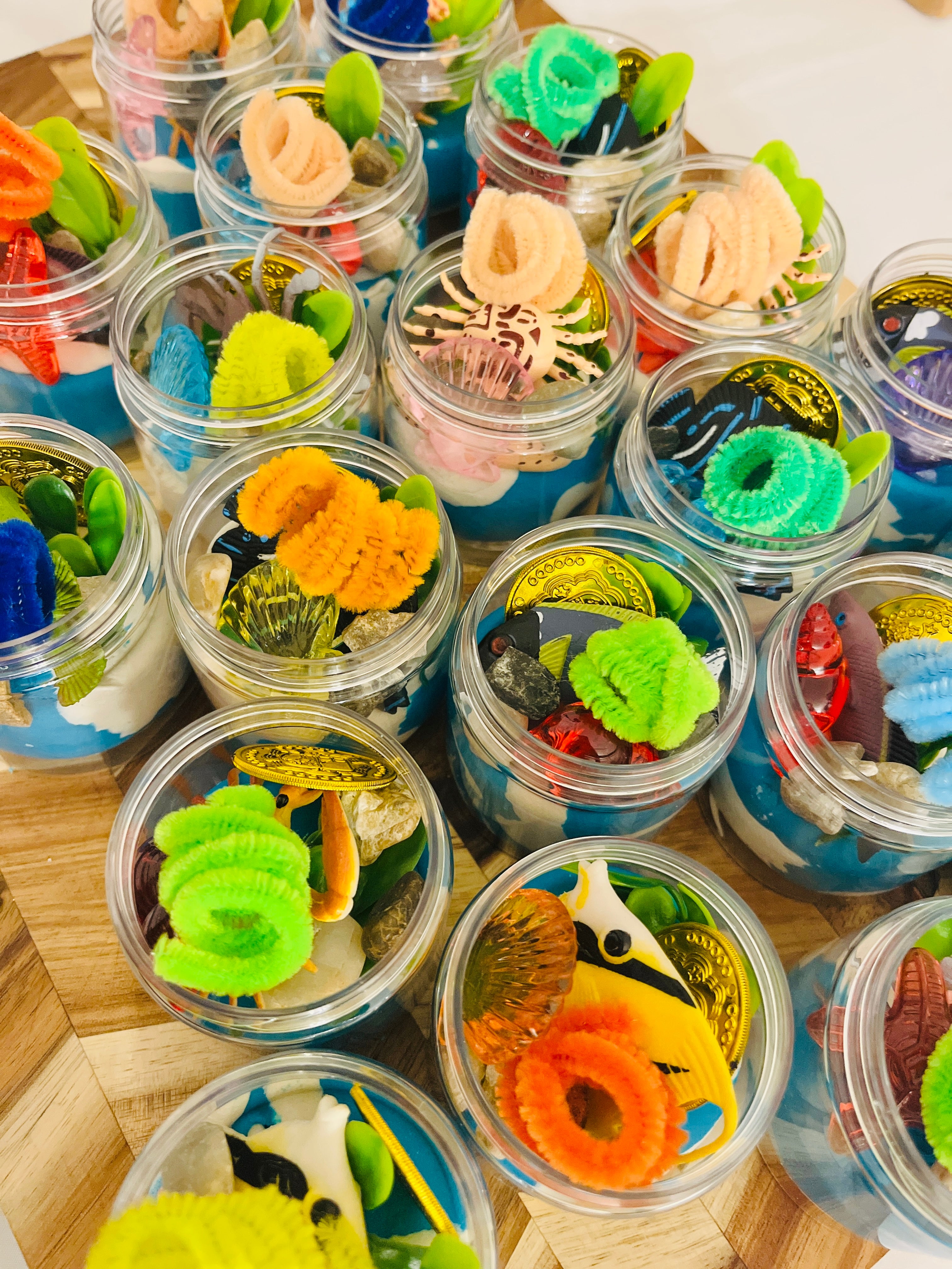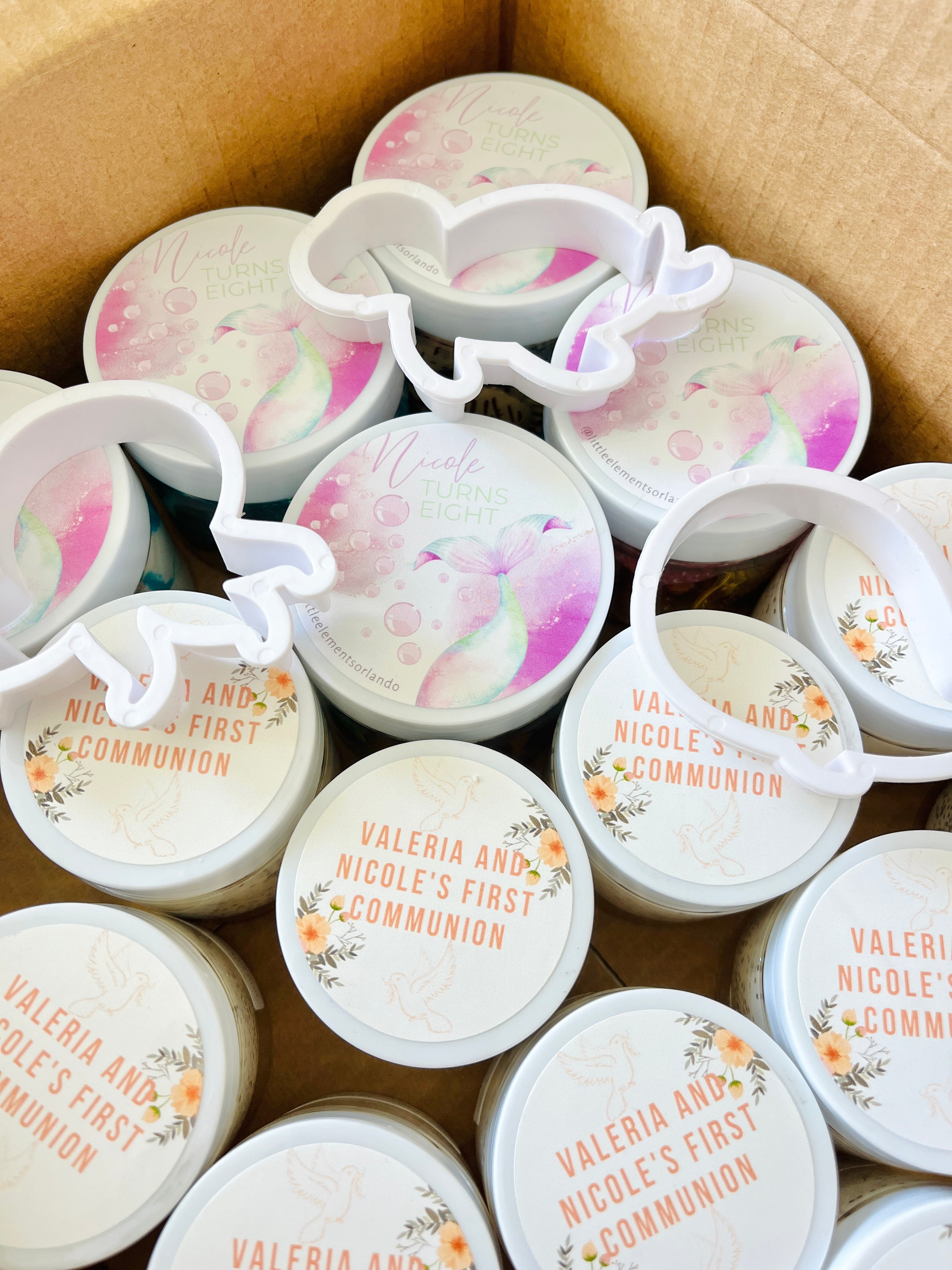 Our play dough is non-toxic and lovingly homemade! We create it using unbleached flour, cream of tartar, salt, oil, water, food coloring, and sometimes glitter. Although our play dough is made from food items, it should not be consumed.