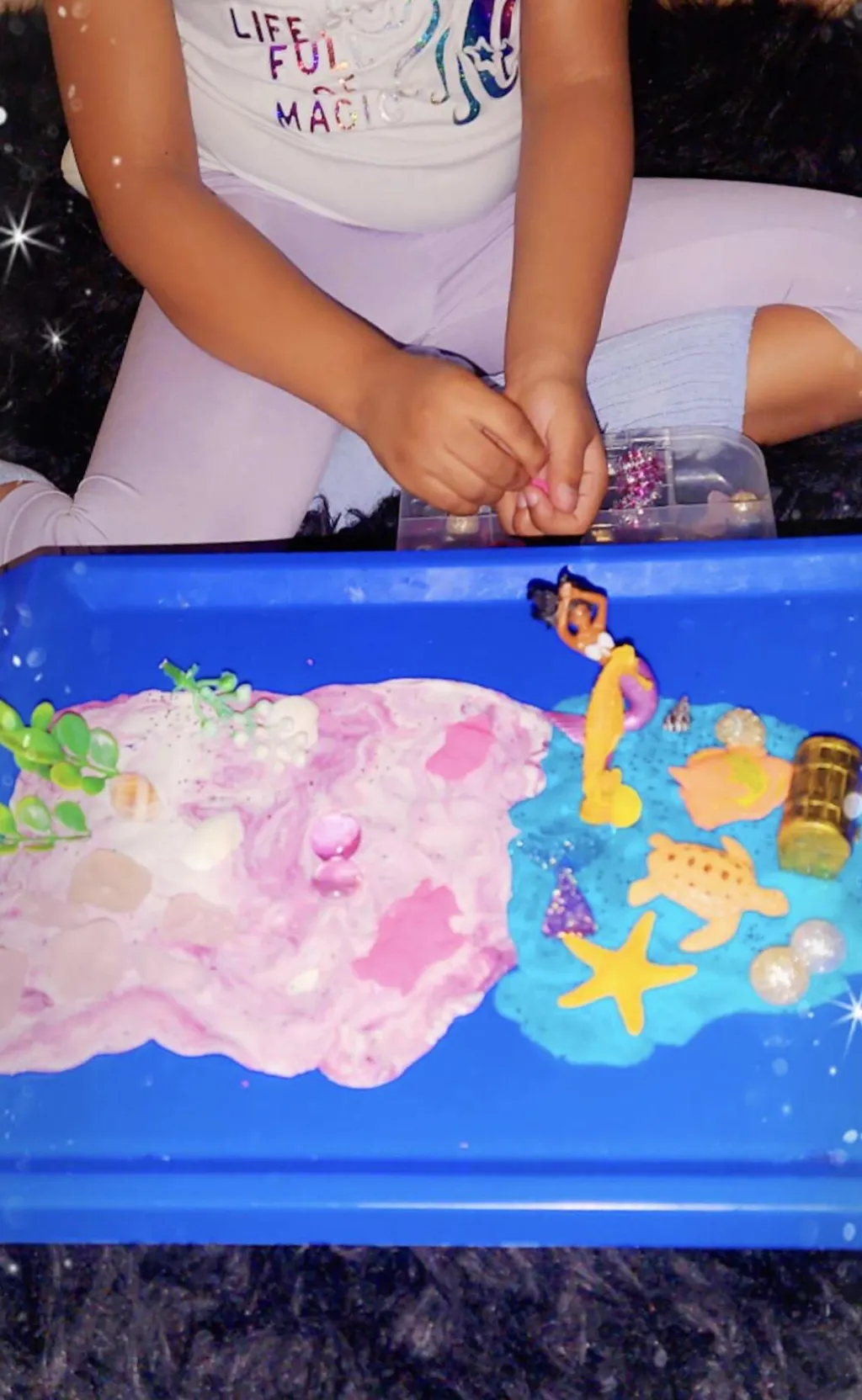 My 6 year old niece LOVES this mermaid kit! She played with it for over an hour upon receiving it and created a few different scenes using the playdough and contents. It was so fun to see her being creative and I love how she can put the play dough and toys back into the carrying case to play later and to keep the playdough fresh.